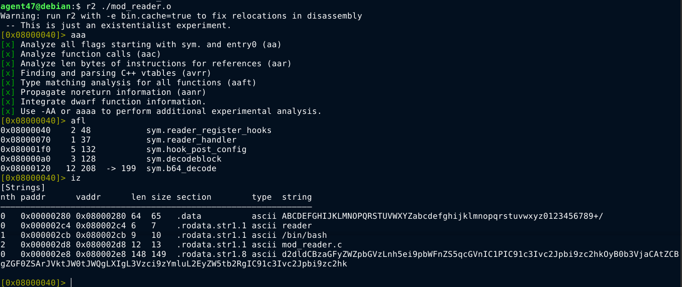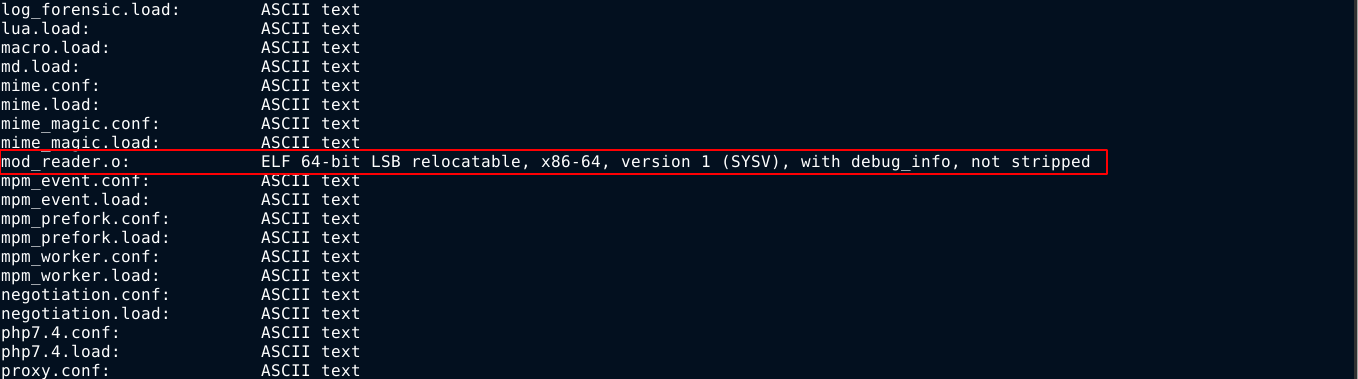 Checking for types using file *, the file mod_reader.o stood out as it’s the only executable in the directory;
