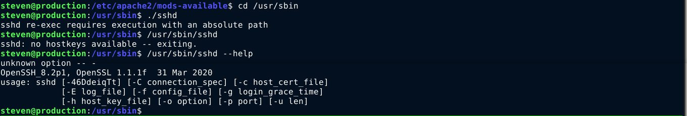 Looks like the individual exploiting the system dropped a file at /usr/sbin/sshd, overwriting the SSH server running on the box. They also changed the modification date to match that of /usr/sbin/a2enmod to avoid detection.
