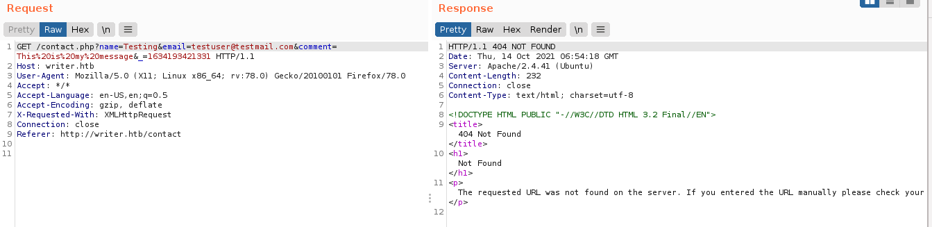 Removing the PHP extension from the form submission path above resulted in a 200 response, but the response obtained is no different from the original page.