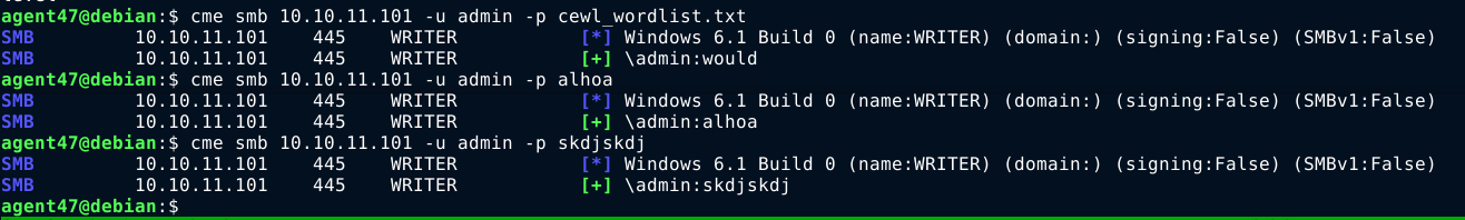 Bruteforce attampts with CrackMapExec kept giving false postives;