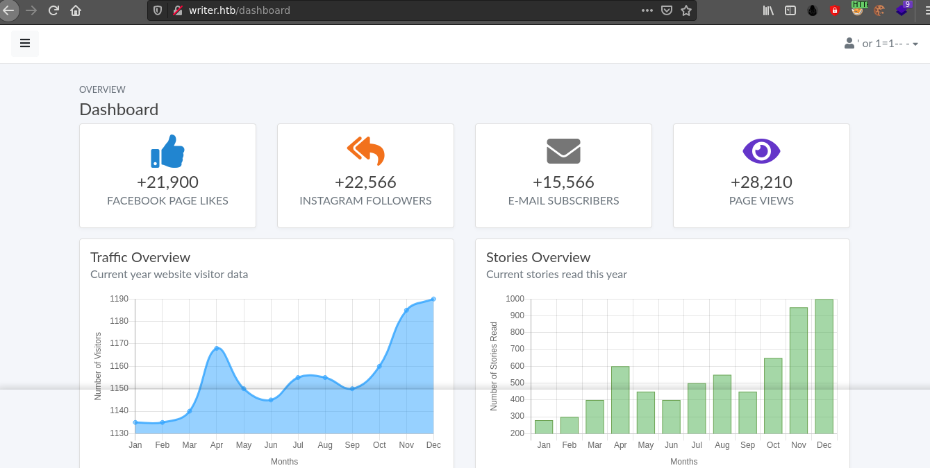 Writer is definitely one of the toughest boxes I have ever solved at the time of writing this. It features a website that is vulnerable to SQL injection, which leads to authentication bypass. Once you have access, there is a feature that allows you to add and edit stories, which is vulnerable to command injection in the filename, but will be tricky to spot without using the SQL injection flaw and reading the python code of the web application.