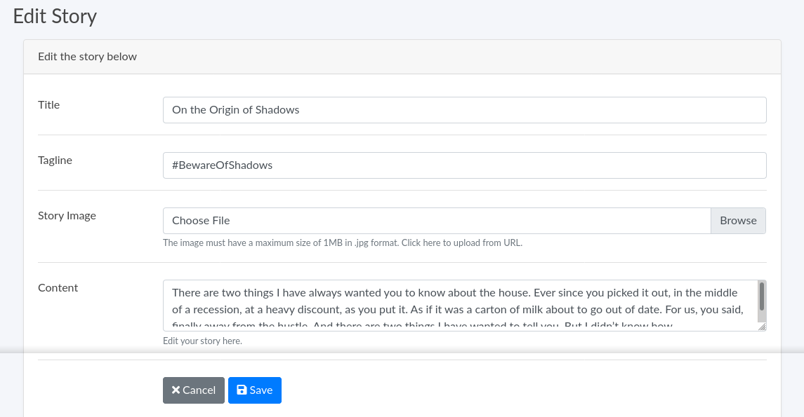 Going into the stories page from the navigation menu, a list of all the stories were displayed, along with an option that allow stories to be updated;