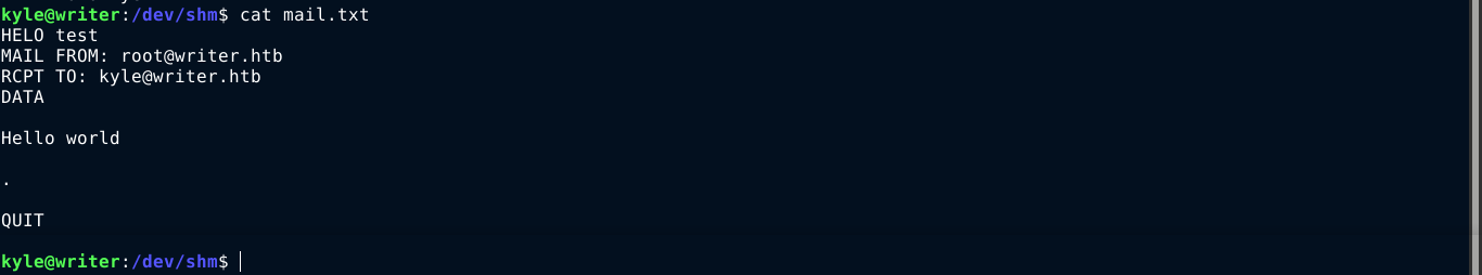 Once inside the box, there are two local users, kyle, and john. Access to Kyle’s account was obtained after cracking a hash obtained from a local MySQL database. Once you have access as Kyle, you can exploit a write permission to /etc/postfix/disclaimer to move laterally to John’s account, and from there exploit another write permission to create a malicious configuration file that will be by apt through a cron job to gain code execution as root.
