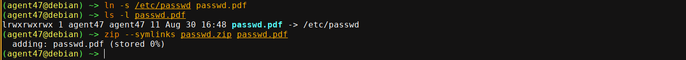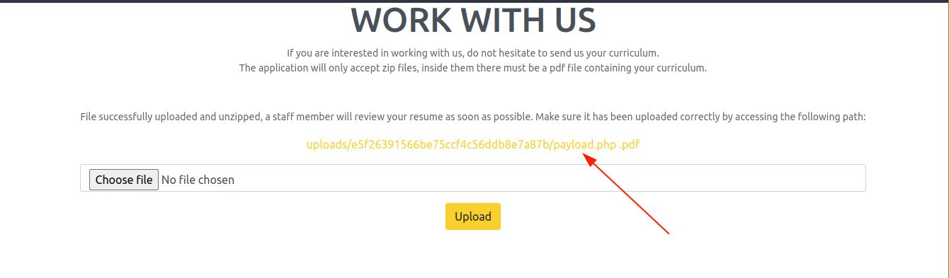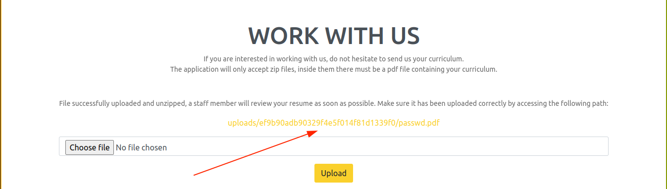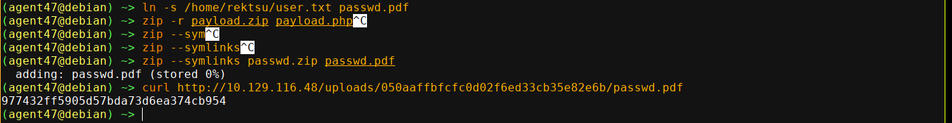 Forging HTTP headers as well as uploading a zip file with a valid PDF file along with a PHP file also failed. At this point one of my teammates noticed that we could upload symolic links inside a zip file and achieve LFI that way as the extracted file will point to another file locally on the box;