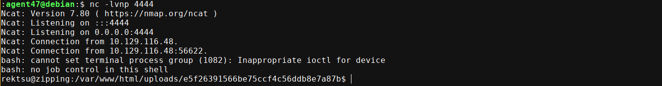To test this, I created a simple PHP payload that invokes a BASH reverse shell, and saved it as payload.php0.pdf (0 here is just a placeholder for easy patching);