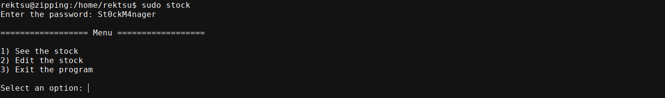 The user rektsu has sudo permissions on what looks like a custom binary;