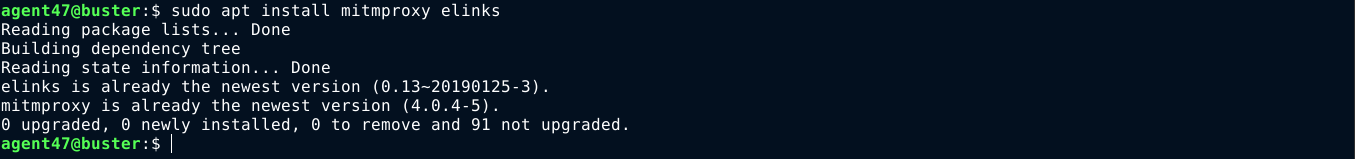Now that we know the tools we need, let’s get started. You can install ELinks and MITM proxy in debian-based distros (which is what I’m using) with;