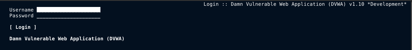 In my case, DVWA is installed at http://localhost/dvwa/. Running elinks http://localhost/dvwa load up the login page of DVWA;