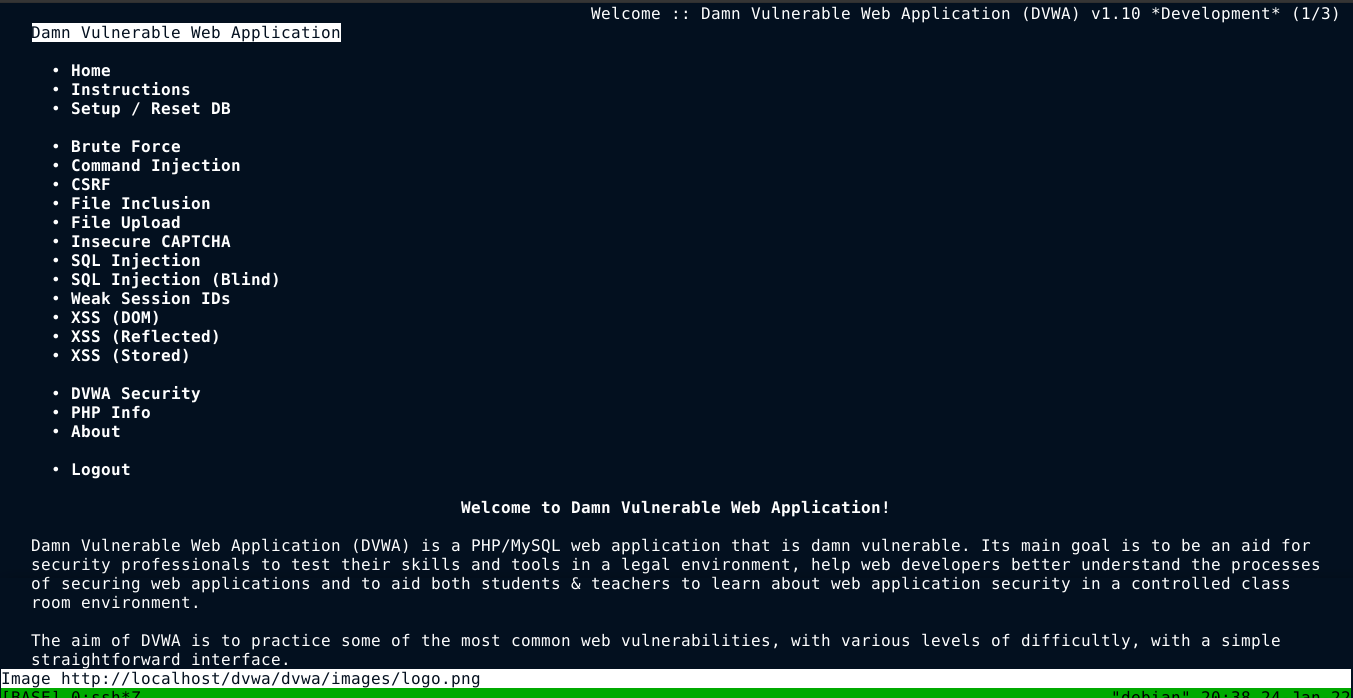 With DVWA installed, it’s time to test the tools. You can open a URL in elinks using the command;