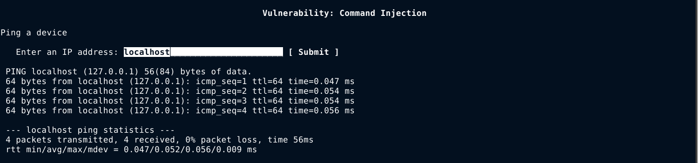 For this post, I will be exploiting a very easy command injection vulnerability in DVWA. User is provided with an input field to enter an IP address for the web application to ping;